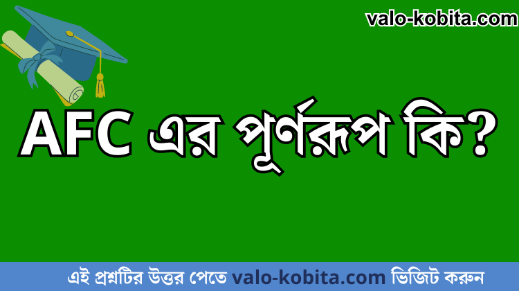 AFC এর পূর্ণরূপ কি: আপনি যদি এই প্রশ্নর উত্তর পেতে চান তাহলে নিচে খেয়াল করুন। আশা করি আপনি উত্তরটি পেয়ে যাবেন। এই প্রশ্নের উত্তরটি শুধু valo-kobita.com এই পাবেন। ধন্যবাদ:)