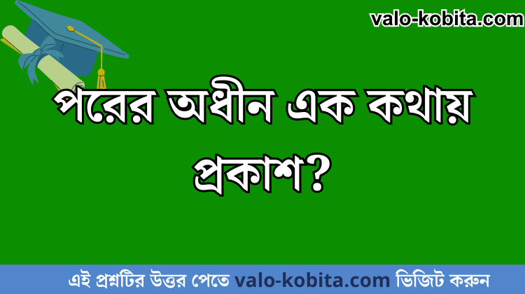 পরের অধীন এক কথায় প্রকাশ: আপনি যদি এই প্রশ্নর উত্তর পেতে চান তাহলে নিচে খেয়াল করুন। আশা করি আপনি উত্তরটি পেয়ে যাবেন। এই প্রশ্নের উত্তরটি শুধু valo-kobita.com এই পাবেন। ধন্যবাদ:)