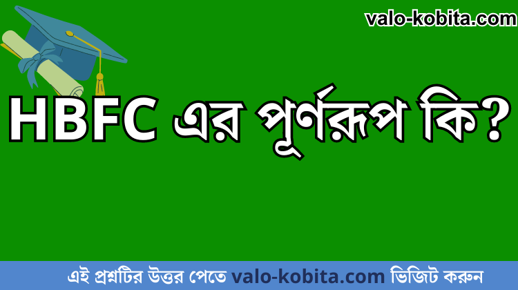 HBFC এর পূর্ণরূপ কি: আপনি যদি এই প্রশ্নর উত্তর পেতে চান তাহলে নিচে খেয়াল করুন। আশা করি আপনি উত্তরটি পেয়ে যাবেন। এই প্রশ্নের উত্তরটি শুধু valo-kobita.com এই পাবেন। ধন্যবাদ:)