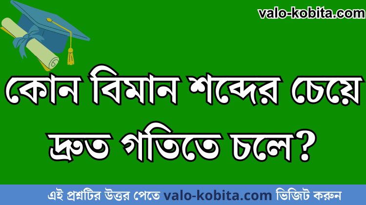কোন বিমান শব্দের চেয়ে দ্রুত গতিতে চলে: আপনি যদি এই প্রশ্নর উত্তর পেতে চান তাহলে নিচে খেয়াল করুন। আশা করি আপনি উত্তরটি পেয়ে যাবেন। এই প্রশ্নের উত্তরটি শুধু valo-kobita.com এই পাবেন। ধন্যবাদ:)