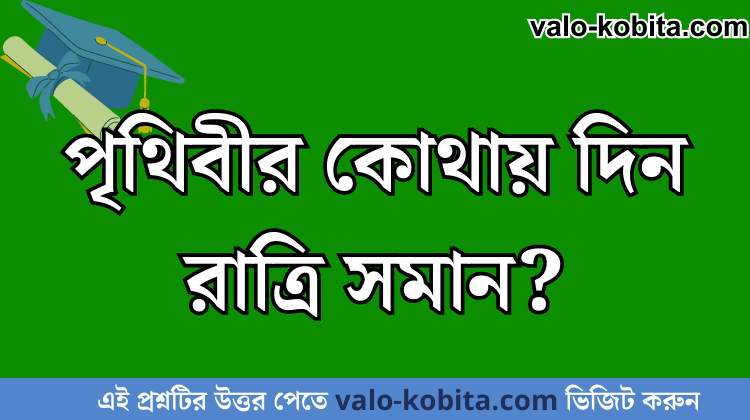 পৃথিবীর কোথায় দিন রাত্রি সমান: আপনি যদি এই প্রশ্নর উত্তর পেতে চান তাহলে নিচে খেয়াল করুন। আশা করি আপনি উত্তরটি পেয়ে যাবেন। এই প্রশ্নের উত্তরটি শুধু valo-kobita.com এই পাবেন। ধন্যবাদ:)