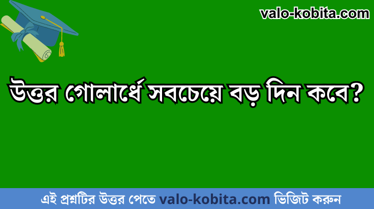 উত্তর গোলার্ধে সবচেয়ে বড় দিন কবে: আপনি যদি এই প্রশ্নর উত্তর পেতে চান তাহলে নিচে খেয়াল করুন। আশা করি আপনি উত্তরটি পেয়ে যাবেন। এই প্রশ্নের উত্তরটি শুধু valo-kobita.com এই পাবেন। ধন্যবাদ:)
