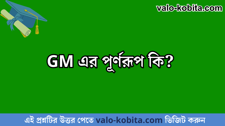 GM এর পূর্ণরূপ কি: আপনি যদি এই প্রশ্নর উত্তর পেতে চান তাহলে নিচে খেয়াল করুন। আশা করি আপনি উত্তরটি পেয়ে যাবেন। এই প্রশ্নের উত্তরটি শুধু valo-kobita.com এই পাবেন। ধন্যবাদ:)